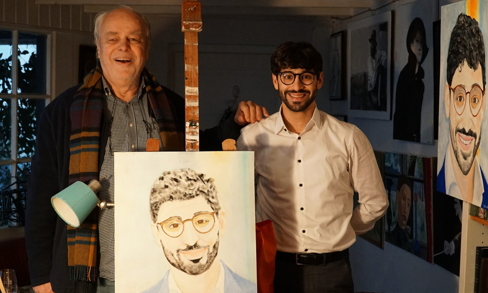 Am gestrigen Freitag besuchte mich der Landtagsabgeordnete Bijan Kaffenberger (SPD) in meinem Atelier, um sich sein Porträt abzuholen. Er ist bereits seit einer längeren Zeit mit uns befreundet und hat ebenfalls als Gast bei unserem Herbert Wehner Stammtisch teilgenommen.