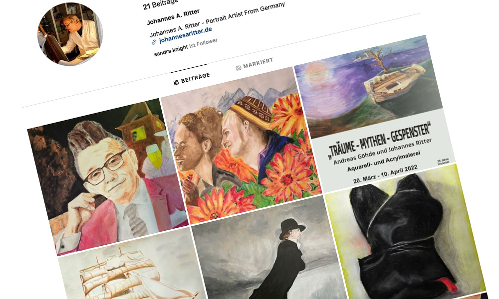 Meine neusten Werke finden Sie ab sofort auch bei Instagram. Hier besteht auch die Möglichkeit für mich, Videos einzubinden. Folgen Sie mir, um nichts zu verpassen.